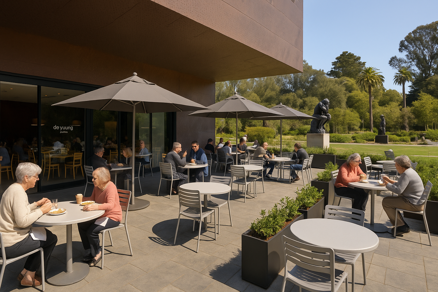 Mitten im weitläufigen Golden Gate Park, wo sich Kunst, Architektur und kalifornisches Licht die Hand geben, liegt das de Young Café – das Herzstück für alle, die nach einer Portion Kultur gern noch eine Portion Kaffee genießen. ☕🌿